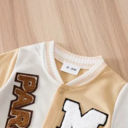 Text and cartoon Print Full Sleeves White and Beige Romper – baseball