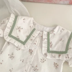 Summer Baby Set White Floral Korean collar top and Strap pant