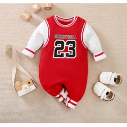 Boys Baseball Beige and red Full Sleeves Romper