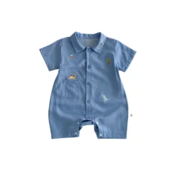 Boys Dino print Blue collared romper | Cute Summer Onesie | Jumpsuit for infants