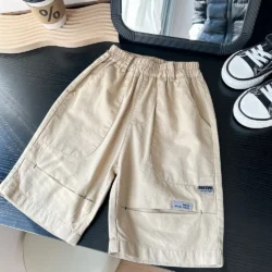 Korean Style Casual Cool Baggy Wide Leg Quarter Cargo Pants for Boys
