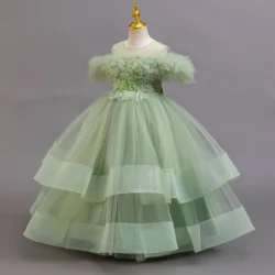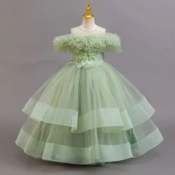Moss Green Elegant Long Concert Dress Ball Gown Party Dress for kids 3-9 Y