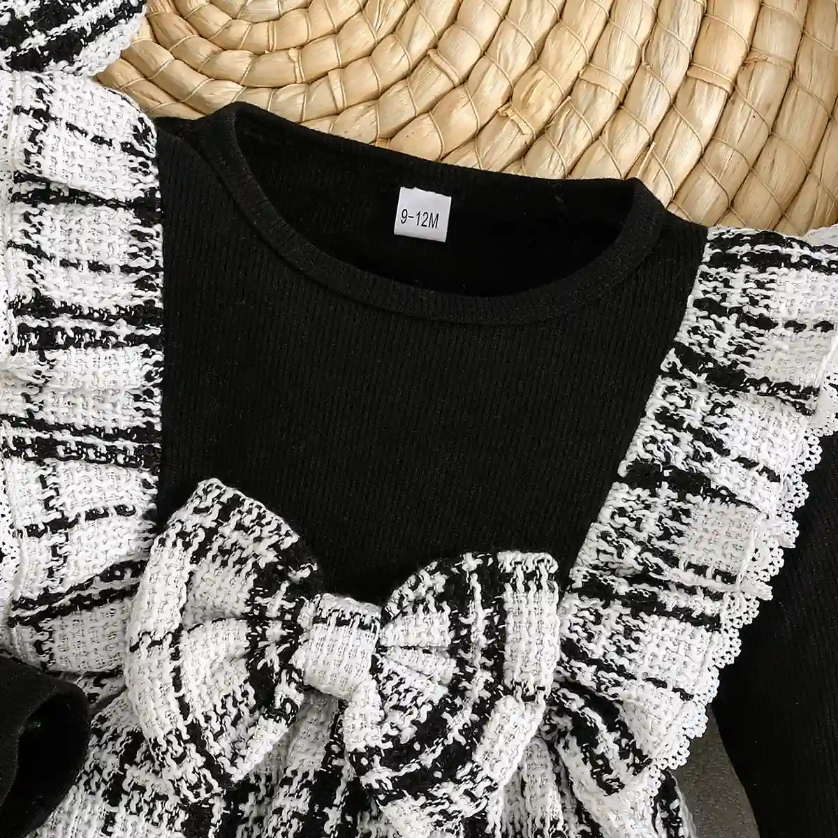 Black & White Checkered Full-Sleeve Baby Dress with Matching Hat up to 3-4Y