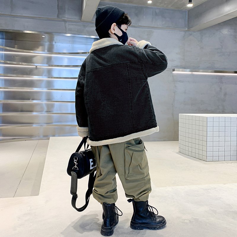Black Fur Denim Jacket for boys 4-9 Y