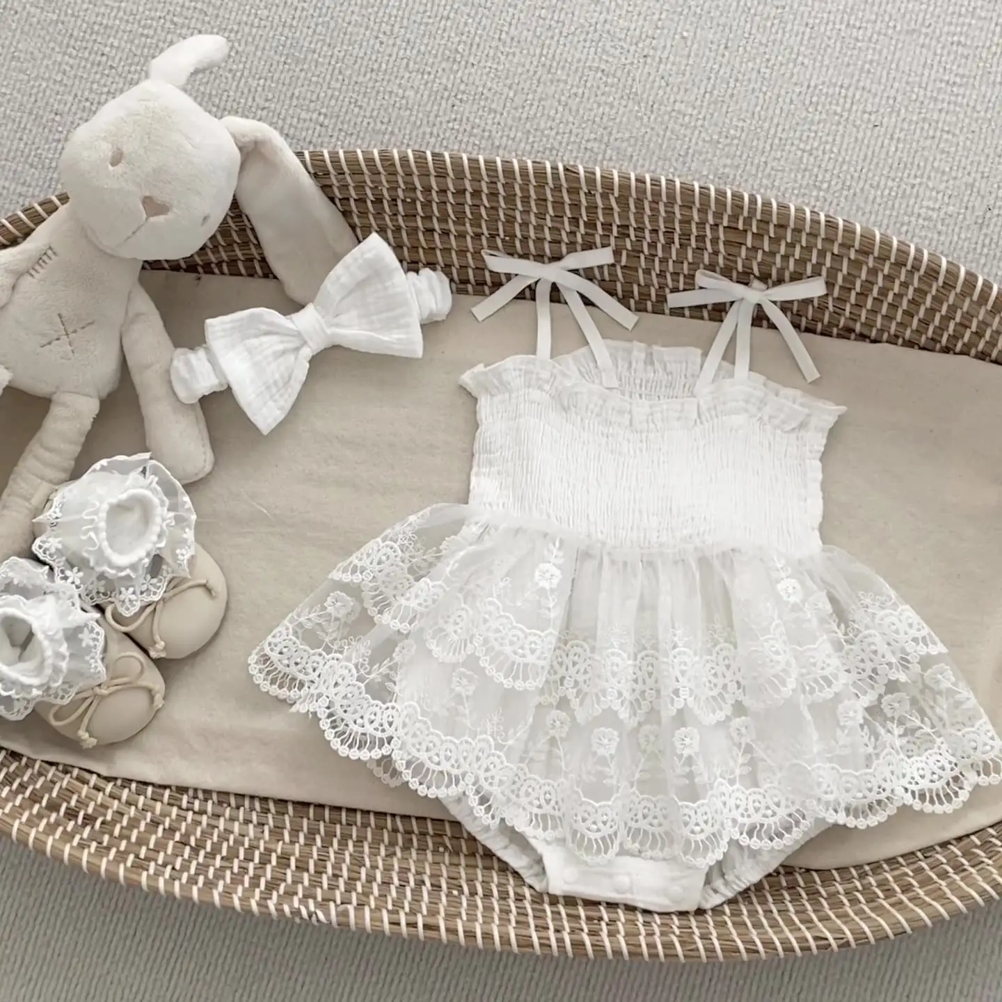 Girls Solid White Lace Cotton Romper – Elegant Onesie for baby girl
