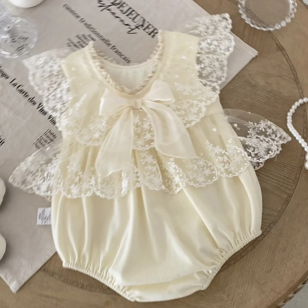 Off-White Sheer Lace Romper for Infant Girls | Baby Wear