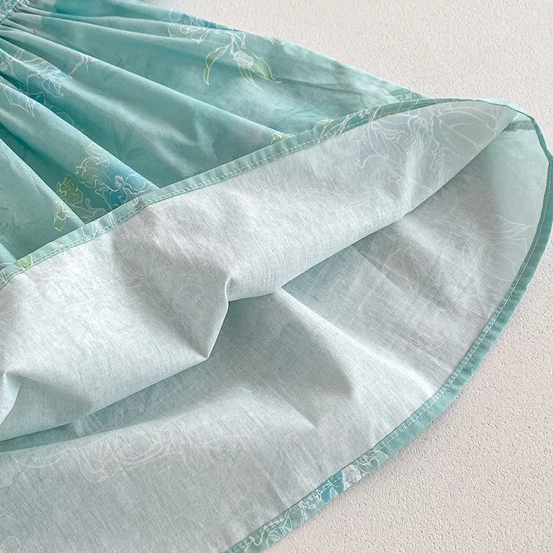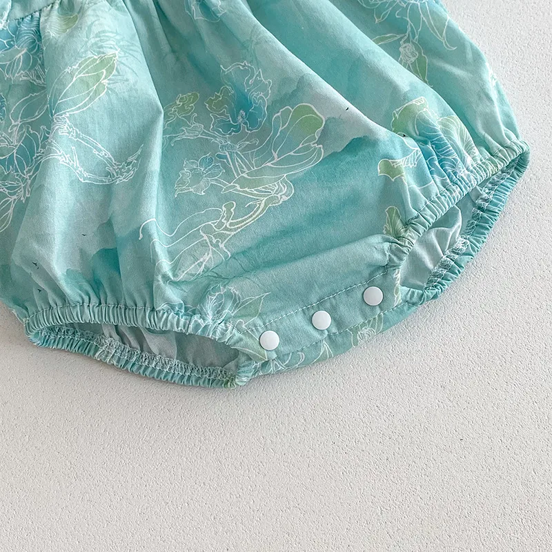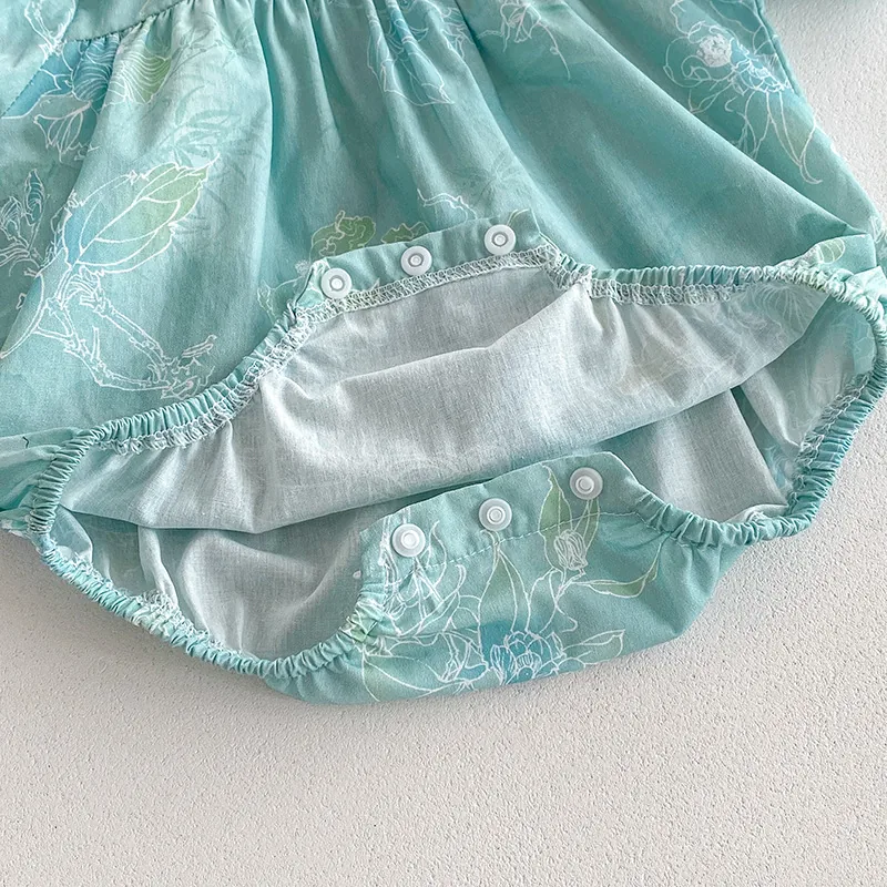 Cotton White Collar Flower print Green Romper with matching hair accessories