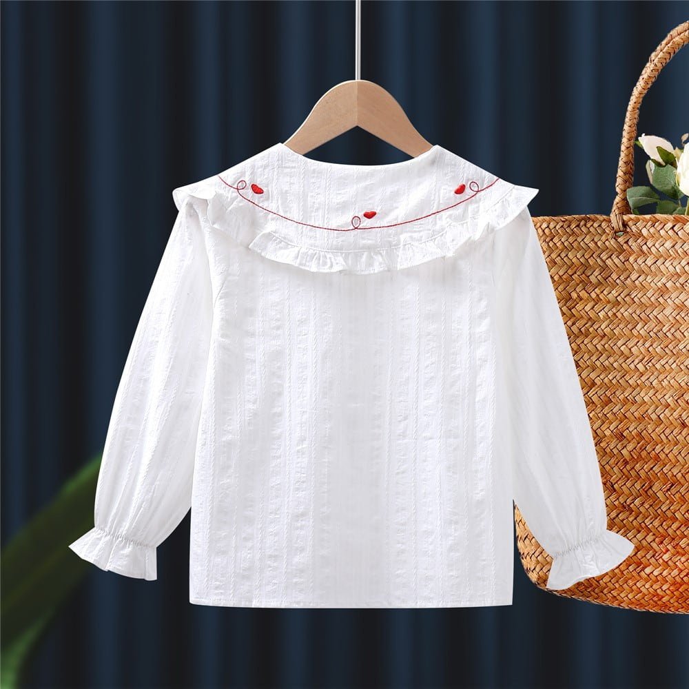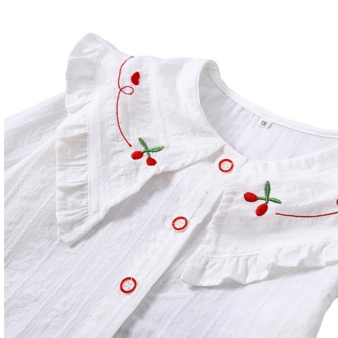Girls elegant Cotton Cherry Print Full sleeves white cotton top