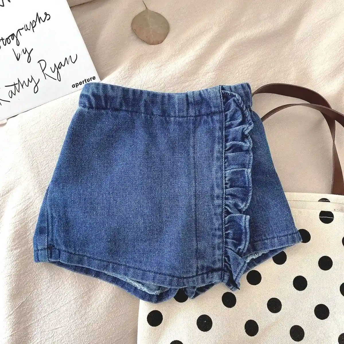 Material: COTTON / Denim Pattern: Solid Occasion: Casual Season: Summer Fitting: Comfortable Bottom Style: Pleated Skirt Pack: Single Closure: Elastic