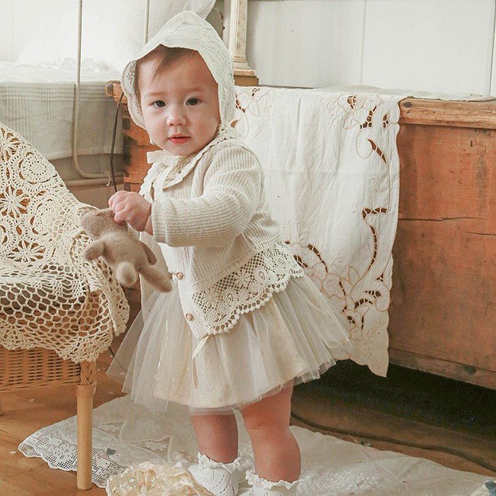 Off-White Lace Full-Sleeve Cardigan for Girls | Kids light Winter Wear