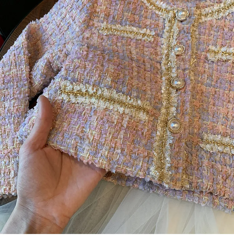 Girls trendy Brown Plaid Pant, Jacket and White Top Suit 5-8Y