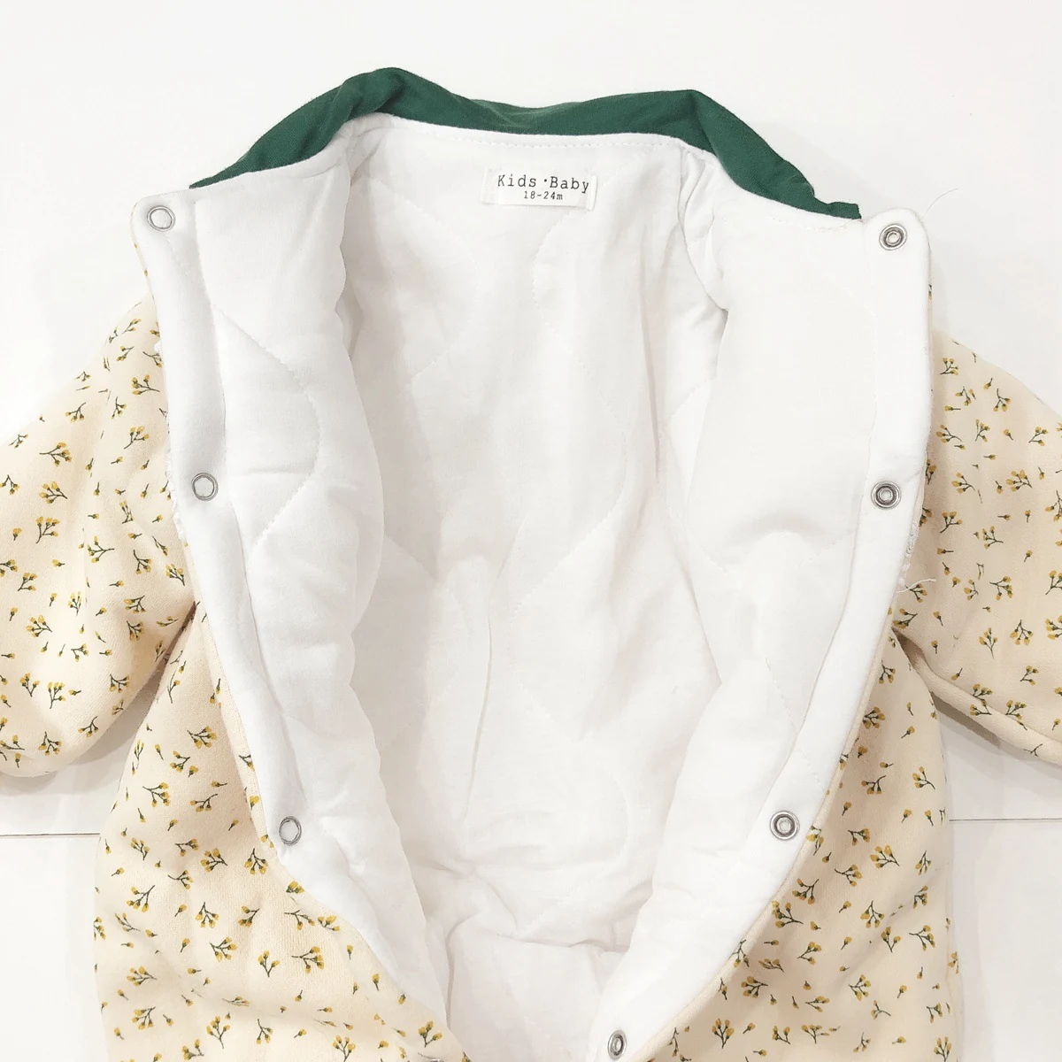 Unisex Beige Puppy Print footed Fur romper – warm and cozy – for infants