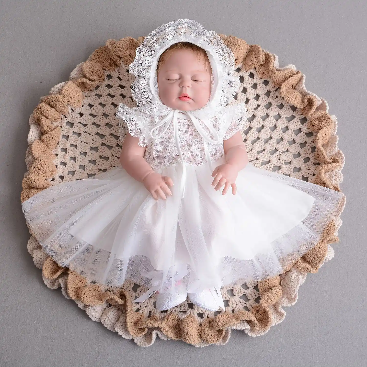 White Net Baptism style Frock with matching hat 0-2Years