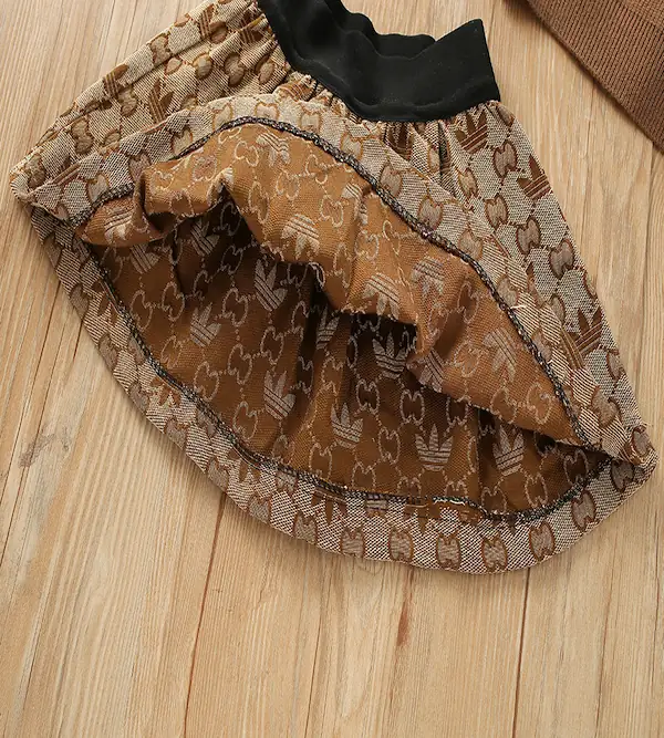 White Collar black bow Brown Cardigan and Knit Skirt Set