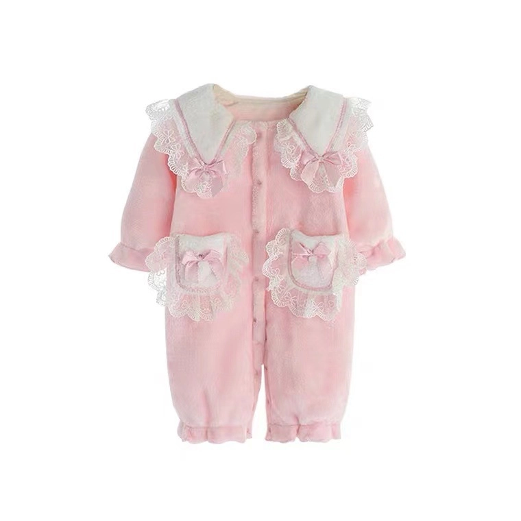 White Lace Collar Soft Fur warm and cozy Pink Romper for infants