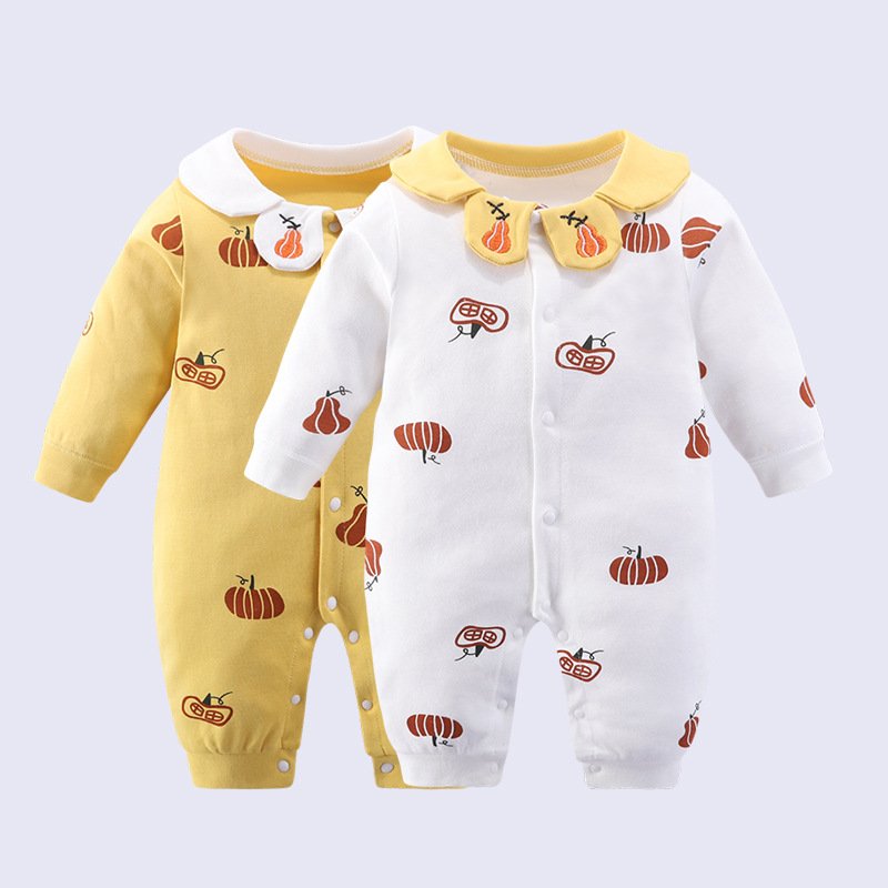 Baby Girl Peach Pinafore Outfit – Full-Sleeve Romper & Headband Set